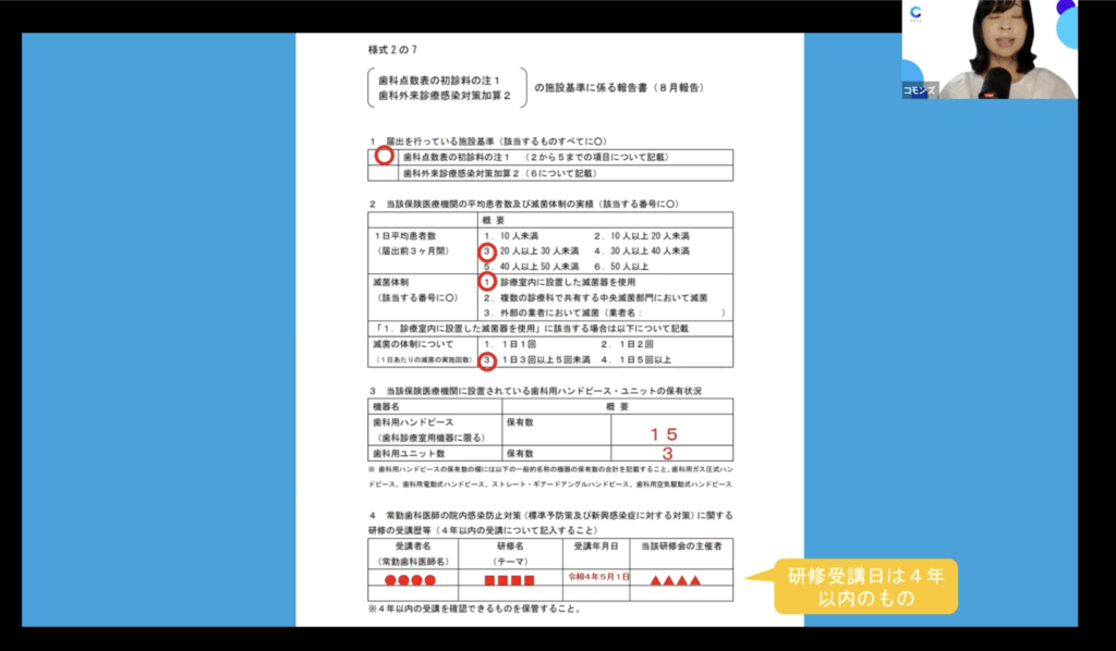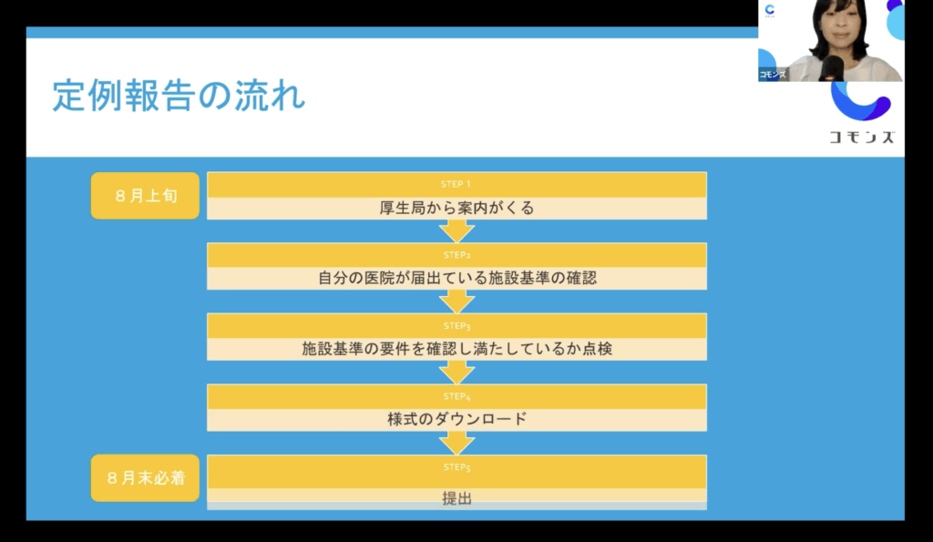 8月末が提出期限の定例報告。慣れている先生にとっては確認の意味で、開業からまもなく慣れていない先生方にとっては「なにをいつまでにやればいいか」をわかりやすく解説いただきました。