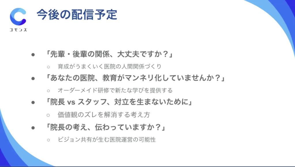 今後も月1回、スタッフマネジメント分野での配信を行います。