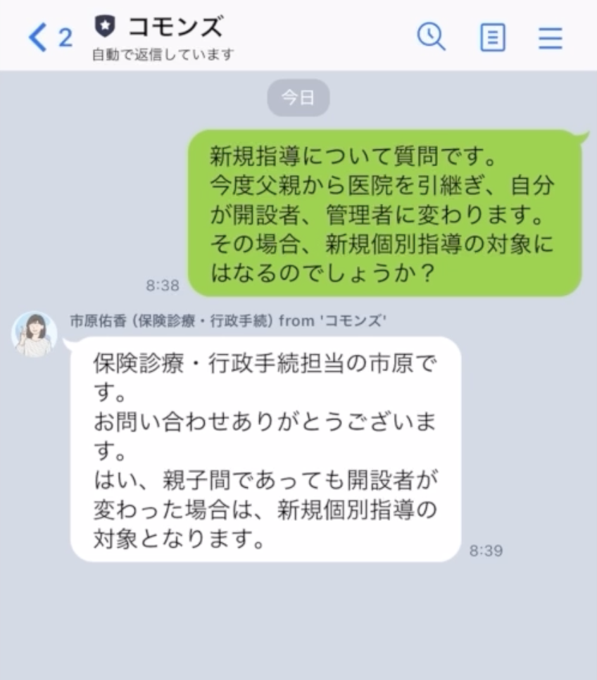 明確な回答をお出しできないご相談については、厚生局や関係役所に確認をしてからお答えいたします。