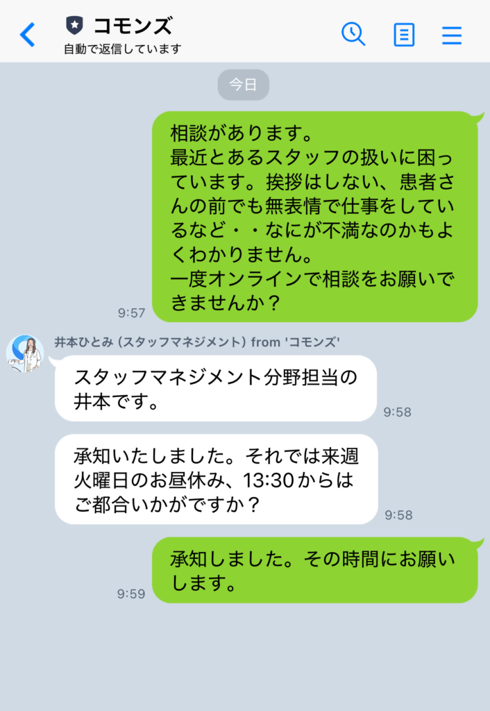 1: オンライン面談を使って専門家に直接スタッフに関する相談をする。